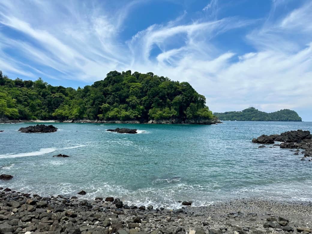 Manuel Antonio Beach is the classic postcard moment — white sand, turquoise water, and jungle cliffs that make you wonder how this place is even real.